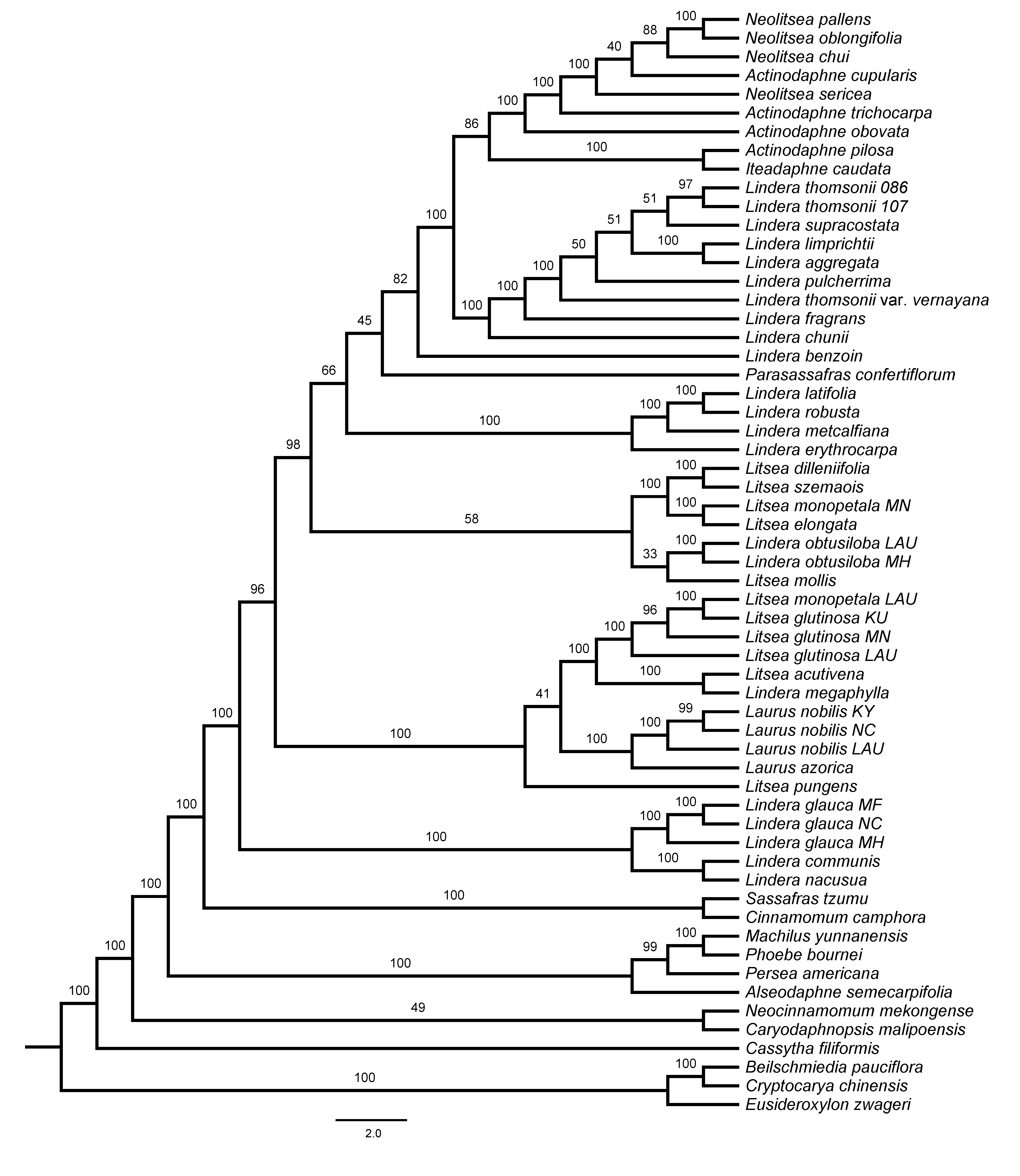 Tribe Laureae, a species-rich group in the family Lauraceae, is phylogenetically sister to tribe Cinnamomeae (Song et al., 2019). It comprises approximately 500 species and 10 genera: Actinodaphne, Adenodaphne, Dodecadenia, Iteadaphne, Laurus, Lindera, Litsea, Neolitsea, Parasassafras and Sinosassafras (Van der Werff & Richter, 1996; Chanderbali, Van der Werff & Renner, 2001; Li et al., 2004; Li et al., 2008b). Species of this tribe are evergreen or deciduous and usually occur in the form of trees or shrubs (Li et al., 2008a). Their distribution ranges from the Mediterranean region, Asia, and Oceania to North America (Li et al., 2004). Some members of Laureae have great ecological and economic value. For example, Neolitsea sericea (Bl.) Koidz. is a dominant species found in various evergreen and deciduous broadleaf mixed forests and in evergreen broadleaf forests (Wang et al., 2009), and Laurus nobilis L. has been used in remedies for centuries (Nayak et al., 2006).