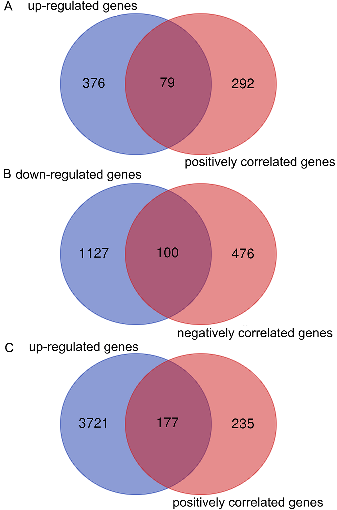 Firstly, we collected RNA-seq dataset from TCGA database and microarrays with gene expression matrix of cervical cancer from GEO or ArrayExpress databases. Gene expression matrix of CESC versus non-cancer cervix tissues and cervical adenocarcinoma versus non-cancer tissues from all included datasets were prepared separately and normalized using limma package in R software v.3.6.1. Differential expression analysis was conducted for each expression matrix with limma package in R software v.3.6.1 and genes concurrently displayed upregulation or downregulation (log2FC >1&adjusted P < 0.05; log2FC <-1&adjusted P > 0.05) in at least two datasets of cervical adenocarcinoma, genes concurrently displayed upregulation (log2FC >1&adjusted P <0.05) in at least three datasets of CESC and genes concurrently displayed downregulation (log2FC <-1&adjusted P < 0.05) in at least two datasets of cervical squamous cell carcinoma were defined as differentially expressed genes (DEGs) of cervical cancer. Expression correlation analysis was carried out using the Pearson correlation method of psych package in R software v.3.6.1 for each qualified dataset. The intersection of the above defined upregulated DEGs and genes concurrently showed positive correlation with PLK1 (r > 0, adjusted P < 0.05) in at least one dataset of cervical adenocarcinoma were designated as genes positively correlated with PLK1 in cervical adenocarcinoma; the intersection of the above defined downregulated DEGs and genes concurrently showed negative correlation with PLK1 (r < 0, adjusted P < 0.05) in at least one dataset of CESC were designated as genes negatively correlated with PLK1 in CESC. The intersection of the above defined upregulated DEGs and genes concurrently showed positive correlation with PLK1 (r > 0, adjusted P <0.05) in at least three dataset of CESC were designated as genes positively correlated with PLK1 in CESC; the intersection of the above defined downregulated DEGs and genes concurrently showed negative correlation with PLK1 (r < 0, adjusted P < 0.05) in at least two dataset of CESC were designated as genes negatively correlated with PLK1 in CESC. Gene ontology (GO) and Kyoto Encyclopedia of Genes and Genomes (KEGG) pathway analysis was performed for genes positively or negatively correlated with PLK1 via ClusterProfiler package in R software v.3.6.1. Significant GO and KEGG terms should meet the criteria of adjusted P < 0.05.