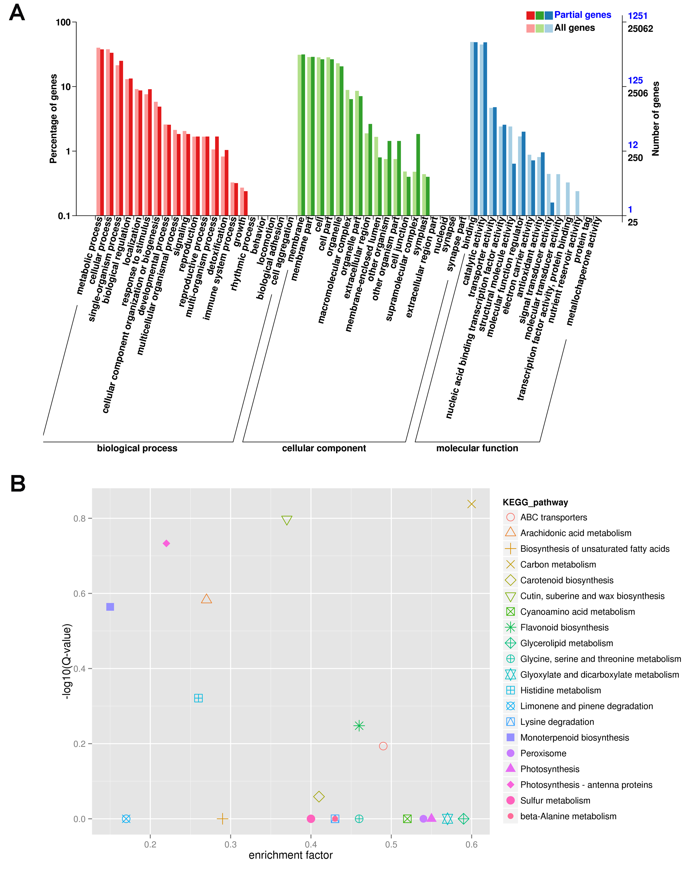 GO term (A) and KEGG pathway (B) significantly enriched in 1568 DEGs