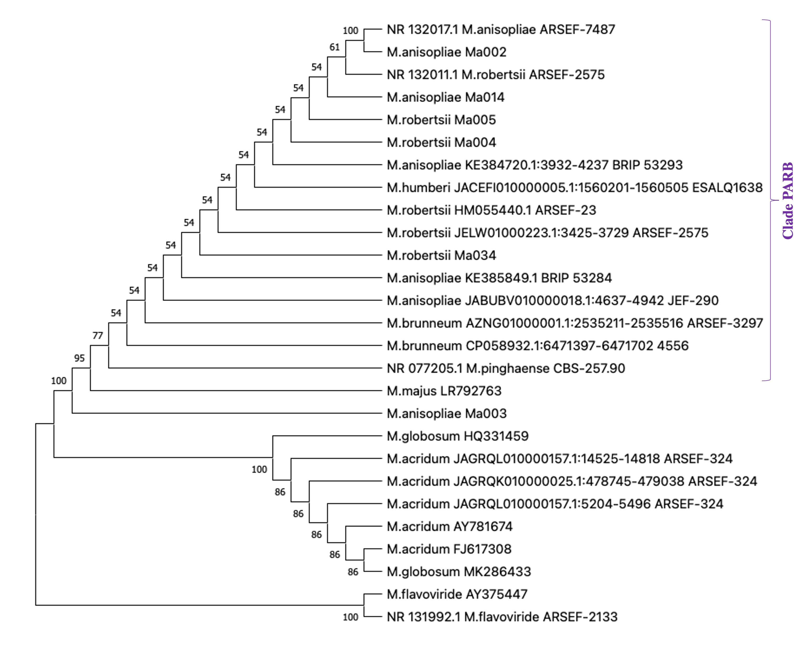 Ma002* | Chrysomelinaea | unknown | Metarhizium anisopliae | 904 | 0.0 | OM490011 | PARB |