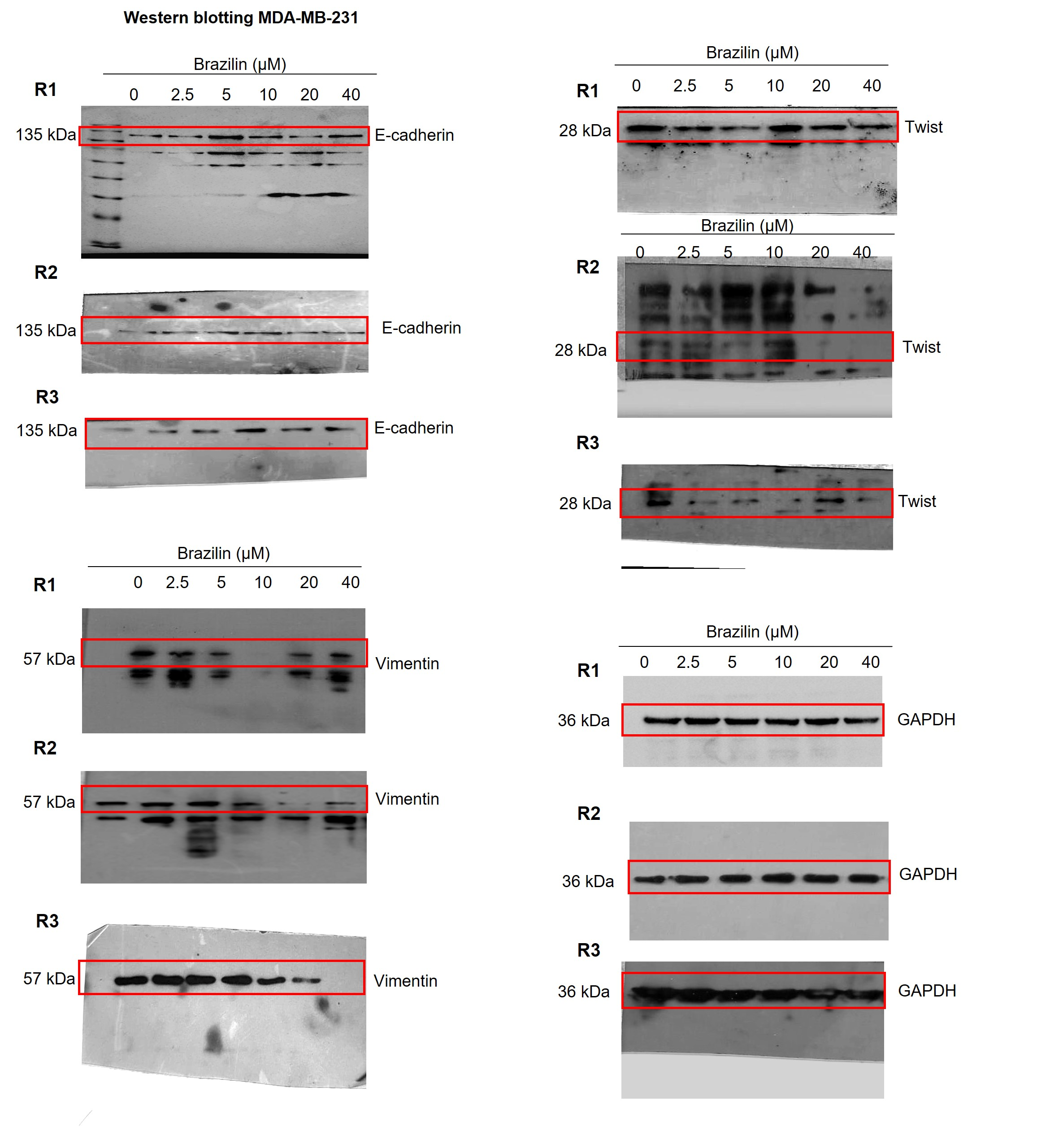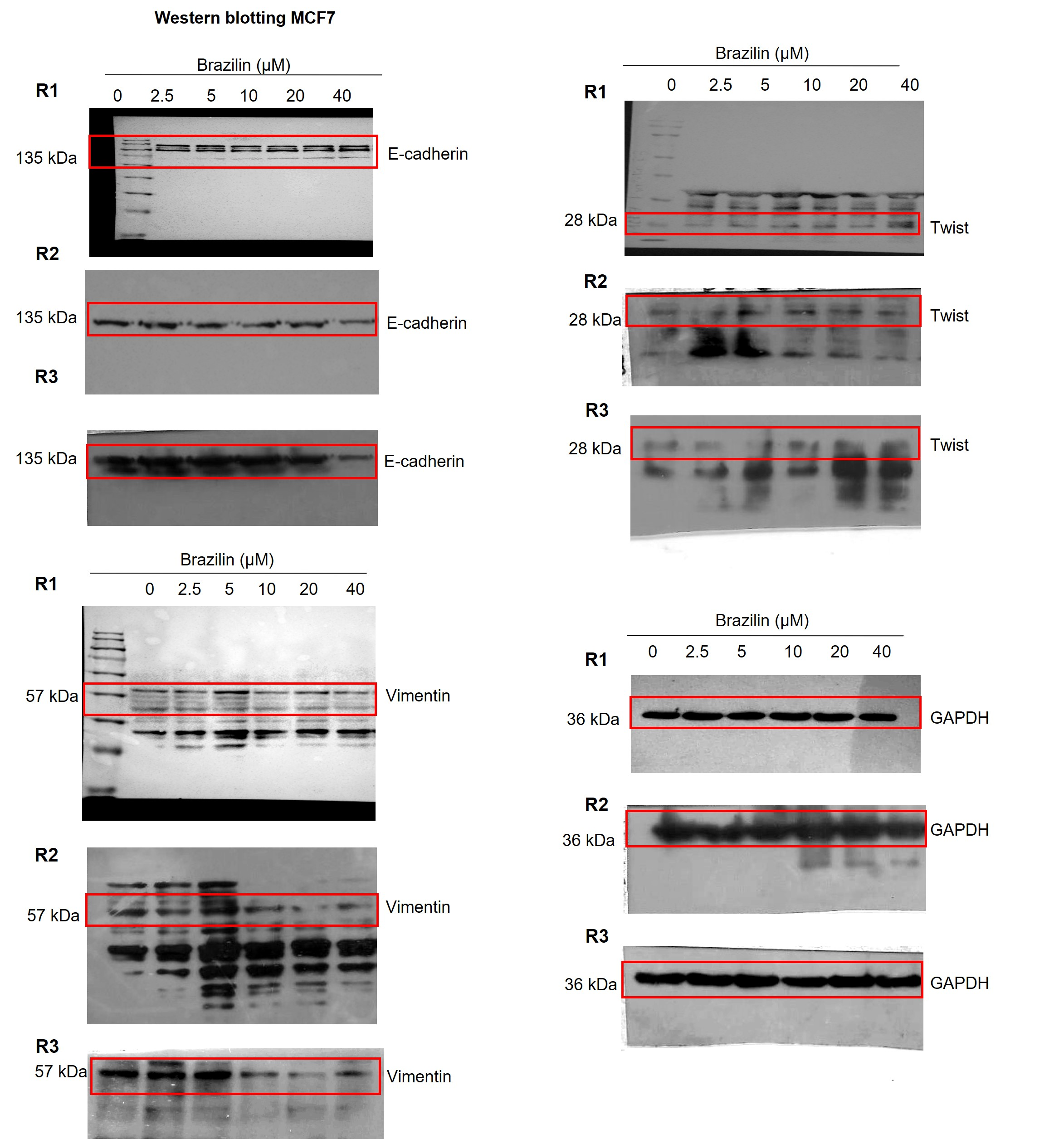 Independent replicates of the effect of Brazilin on E-cadherin, vimentin and Twist levels.
