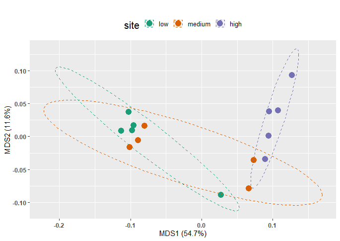 Low, medium, and high represent sites with different levels of pollution (see Table S1). Stress level=0.065.