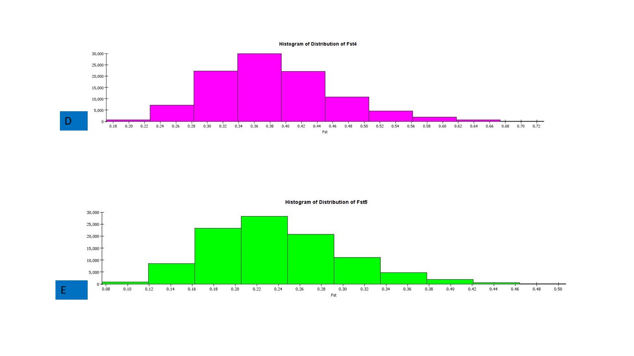 (D) Histogram distribution of Fst4 and (E) Histogram distribution of Fst5