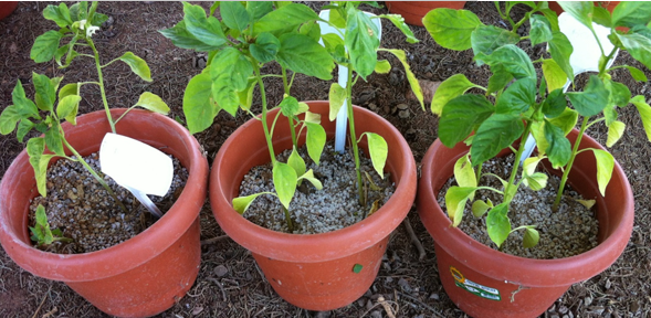 In order to determine the electrical conductivity (EC) and pH values of the growing medium in the different applications, 100 g samples of the potting mixture were weighed and used to prepare saturation paste with distilled water. The pH and EC values of the saturation paste were measured using a pH meter and an EC meter, respectively.