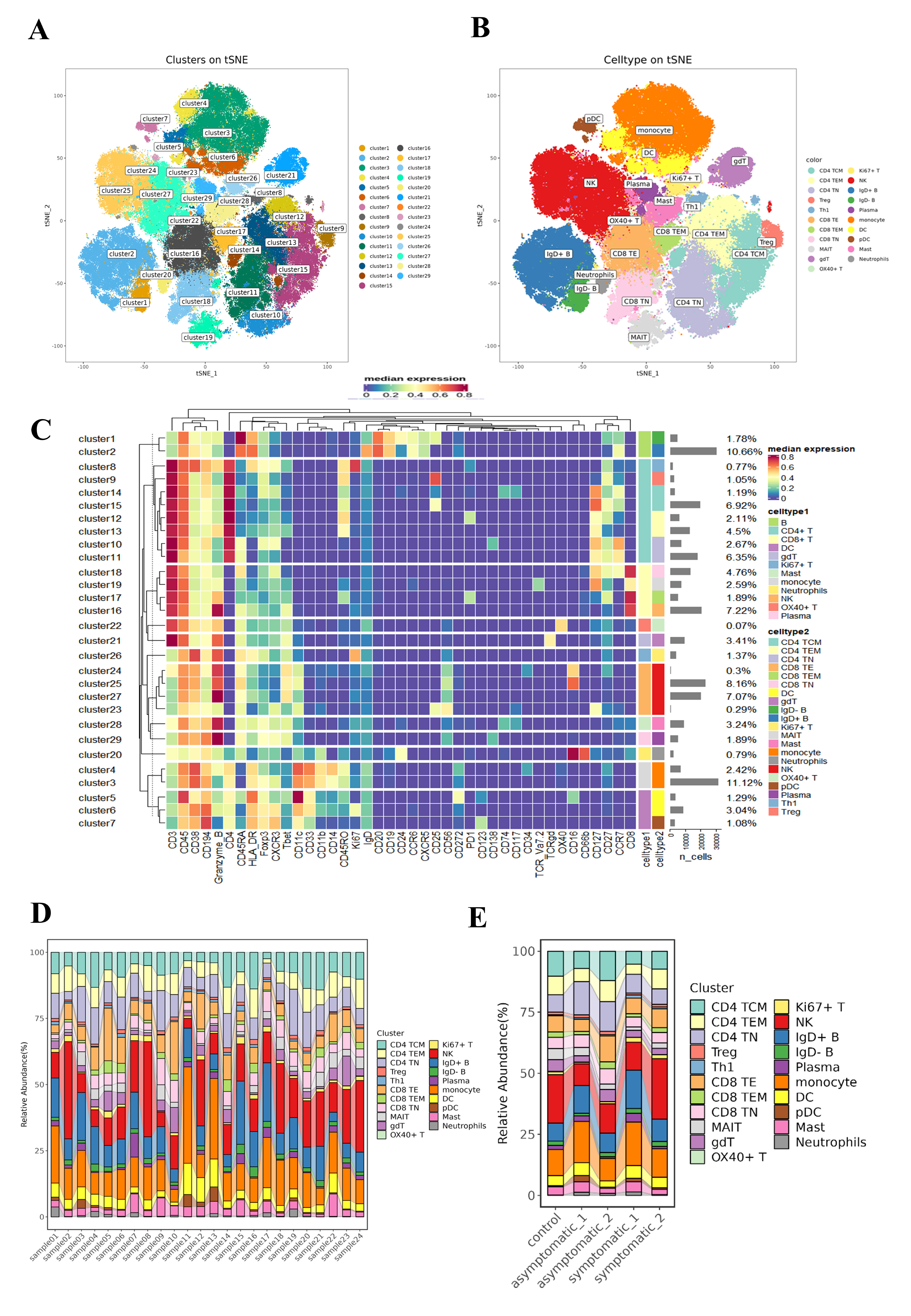 - COVID-19, SARS-CoV-2, Asymptomatic, Symptomatic, Immune status, Mass cytometry