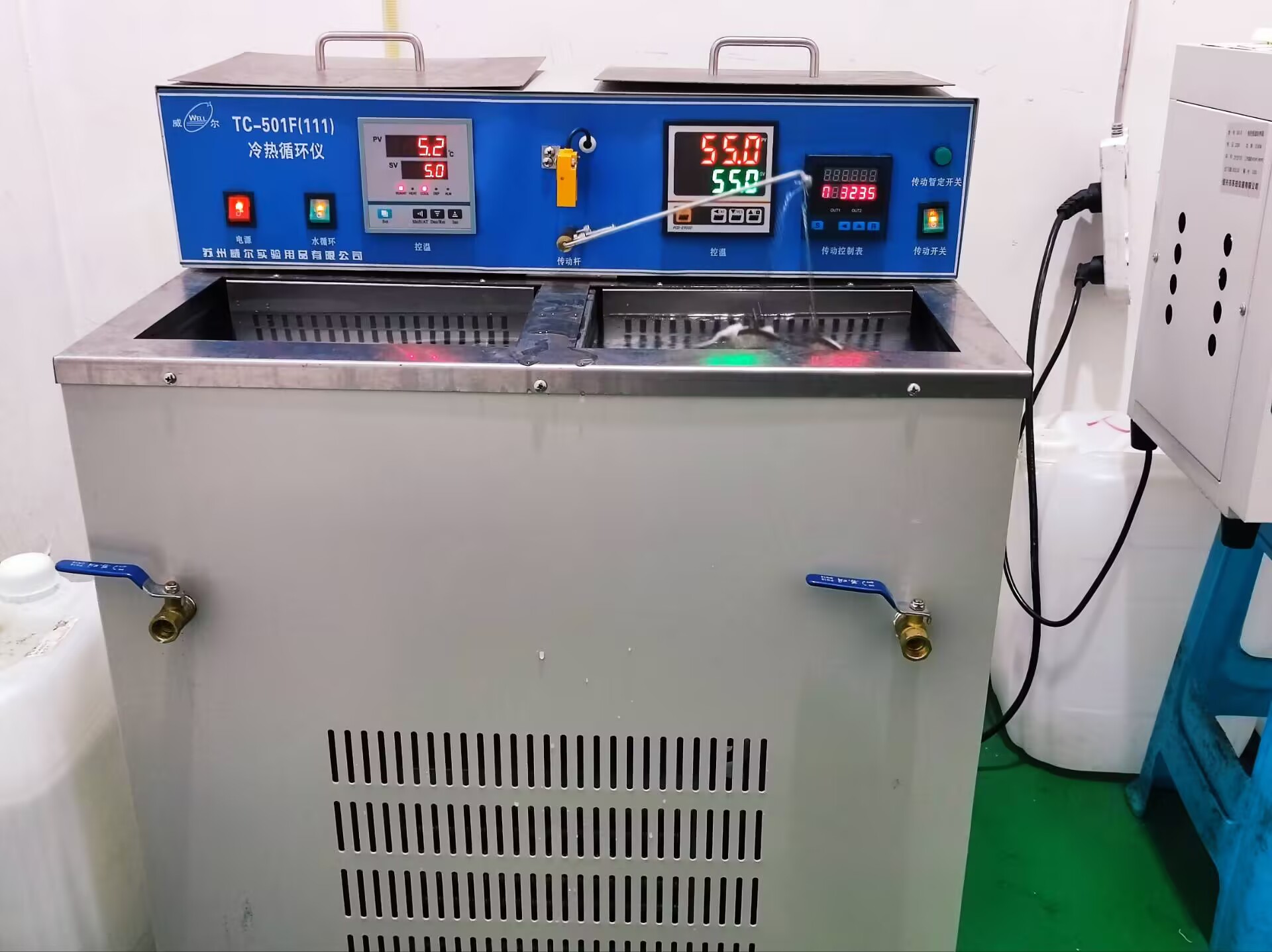 Each group of samples was subjected to 10,000 thermal cycles in a high and low-temperature exchanger (TC-501FIII, Suzhou Will Experimental Supplies Co., Ltd, Suzhou, China) in a distilled water bath at 5 °C and 55 °C. The process involved immersing the samples in the low-temperature bath for 30 s, lifting them to the liquid surface, and subsequently immersing them in the high-temperature bath, with an interval of 15 s. The samples were then left in the high-temperature bath for an additional 30 s before being lifted again, completing one cycle. The rotation arm of the device facilitated the exchange of samples between baths and immersion in the water.