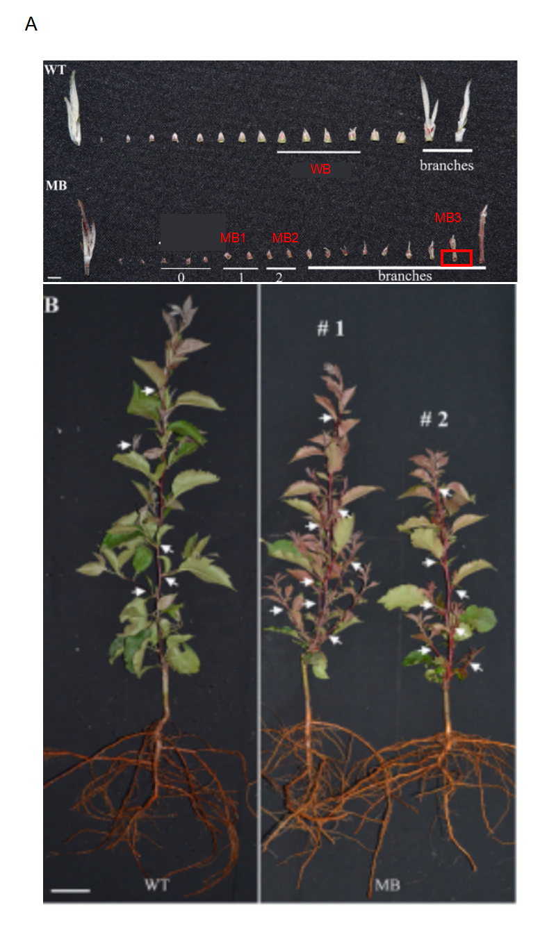 PRJNA801073 | WT (M. spectabilis ‘Bly114’) and its multibranching mutant(MB) | Axillary buds |