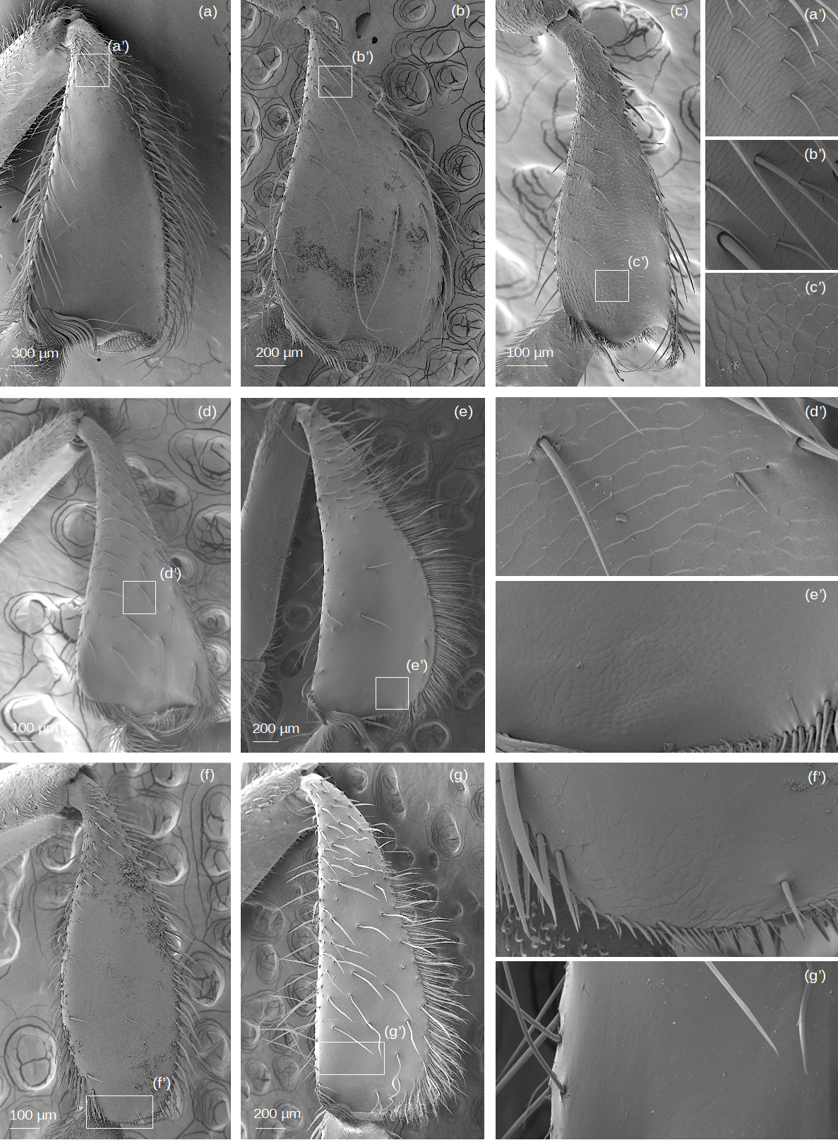 The types of setae and the degree of development of the penicillae, rastella and auricular areas are highly variable among species (Table 5). The lengths of setae forming these structures are listed in Table S5.