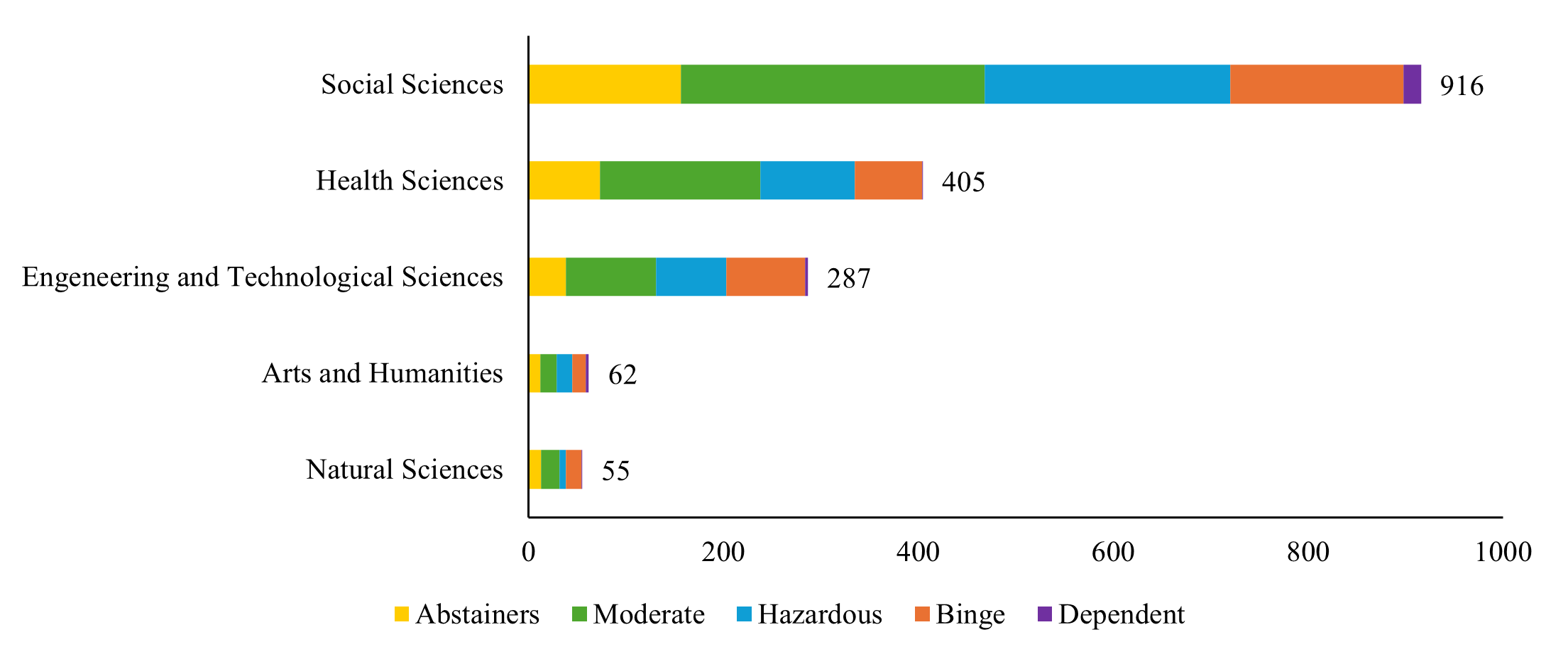 Early onset of drinking has also been widely recognised as a risk factor for developing harmful drinking patterns later in life (Grant, Stinson & Harford, 2001; Hingson, Heeren & Winter, 2006; Morean et al., 2014), a finding that is further supported by our results. On average, students reported initiating alcohol consumption at age 16, with Dependent Drinkers showing the earliest onset, at 14.8 years. The linear progression from Abstainers to Dependent Drinkers underscores the cumulative impact of early alcohol exposure on future drinking patterns and the development of AUD (Grant et al., 2015; Hingson, Heeren & Winter, 2006; National Institute on Alcohol Abuse and Alcoholism, 2024a), highlighting the importance of delaying the onset of alcohol consumption in public health policies aimed at reducing the risk of alcohol misuse and its associated harms (Hingson & Zha, 2009; Stigler, Neusel & Perry, 2011).