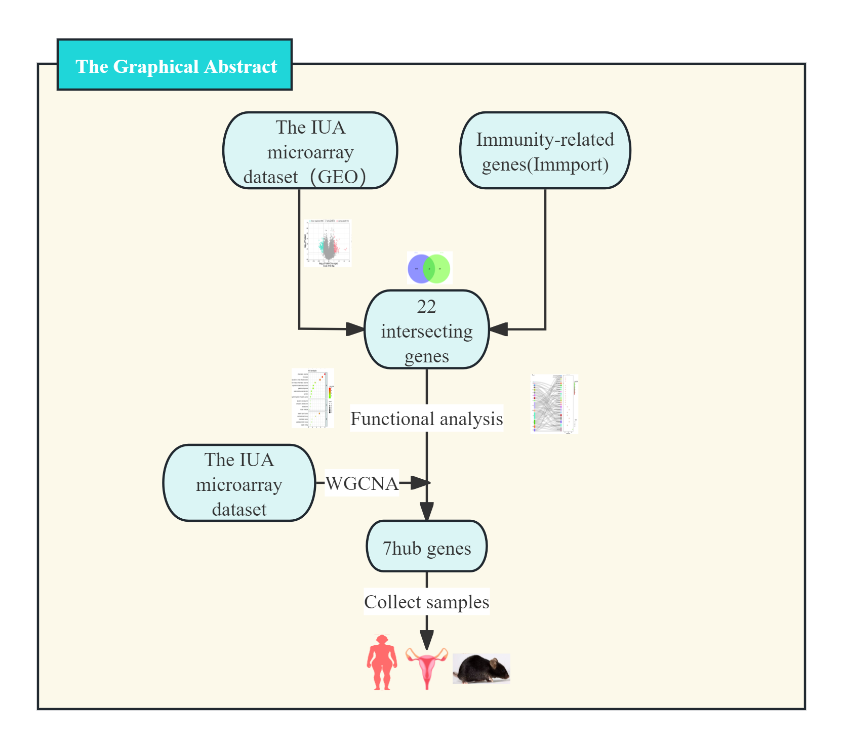 IUA results from the dysregulation of the local immune microenvironment following uterine trauma, impairing endometrial repair processes (Lee et al., 2021). This dysregulation involves aberrant immune activation after injury, dysregulated interactions among inflammatory mediators, and the immune cells participating in key pathological processes, such as epithelial–mesenchymal transition (EMT), abnormal cellular proliferation, and fibrosis. We identified immune-related differentially expressed genes (DEGs) associated with IUA from the Gene Expression Omnibus (GEO) database using bioinformatic analysis. Weighted gene co-expression network analysis (WGCNA) was used to identify the hub genes closely that are linked to IUA progression. The results of the subsequent functional analysis revealed the critical molecular pathways and candidate genes implicated in IUA pathogenesis. The results of our integrative approach offers insights into the mechanistic processes underlying IUA and may be used to guide the development of targeted therapeutic strategies (Kulasingam & Diamandis, 2008).