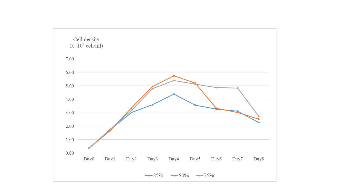 Preliminary tests were conducted by supplementing the culture medium with nitrogen concentrations of 25%, 50%, and 75% to assess β-glucan accumulation in diatom cells. The highest β-glucan accumulation was observed at the 50% nitrogen level as shown in Table S1 of supplementary data. This N concentration was further selected for the next experiment.