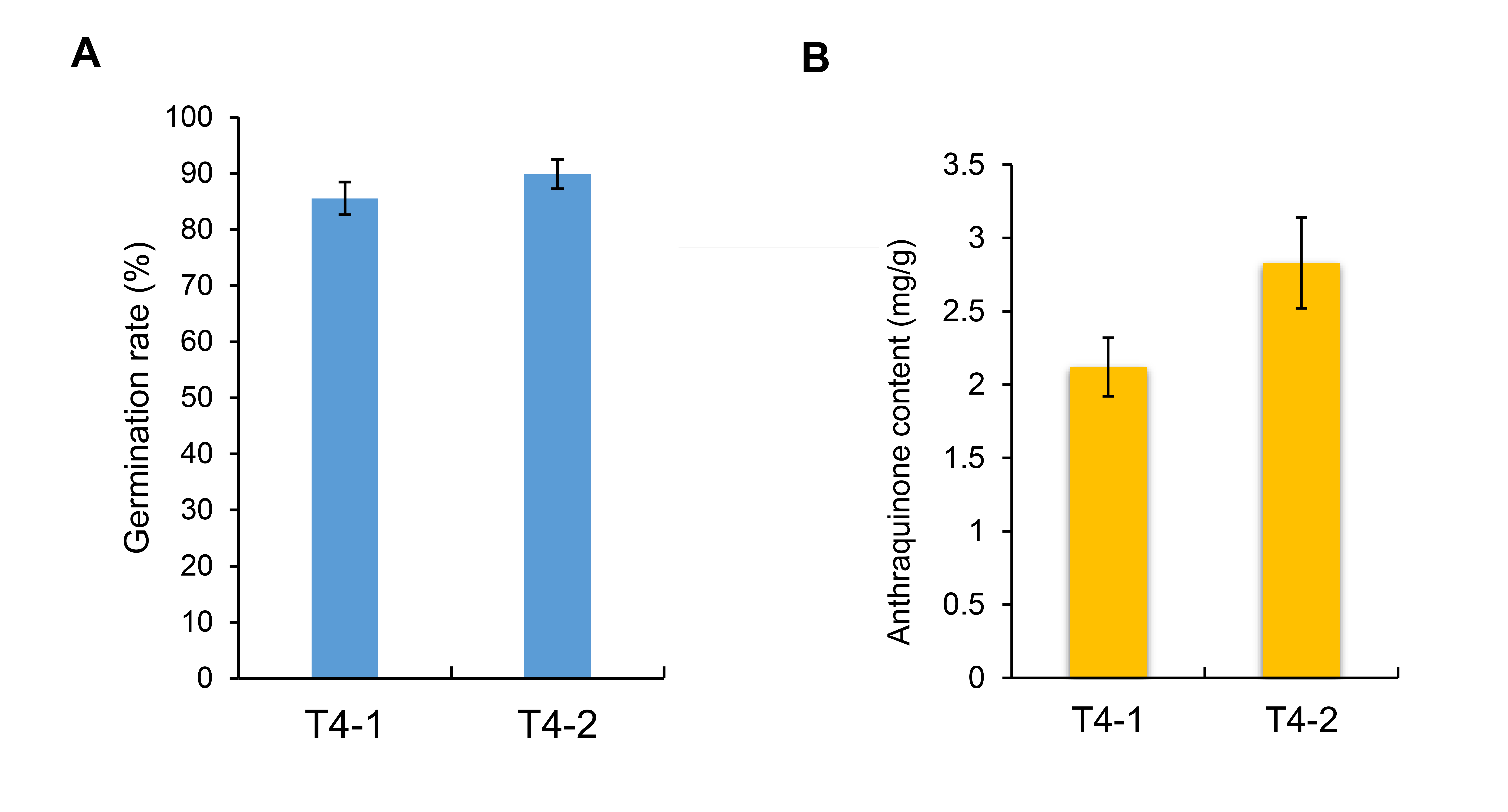 The germination rate under drought stress treatment, and the content of secondary metabolites anthraquinone of C. nomame T4-1 and T4-2.