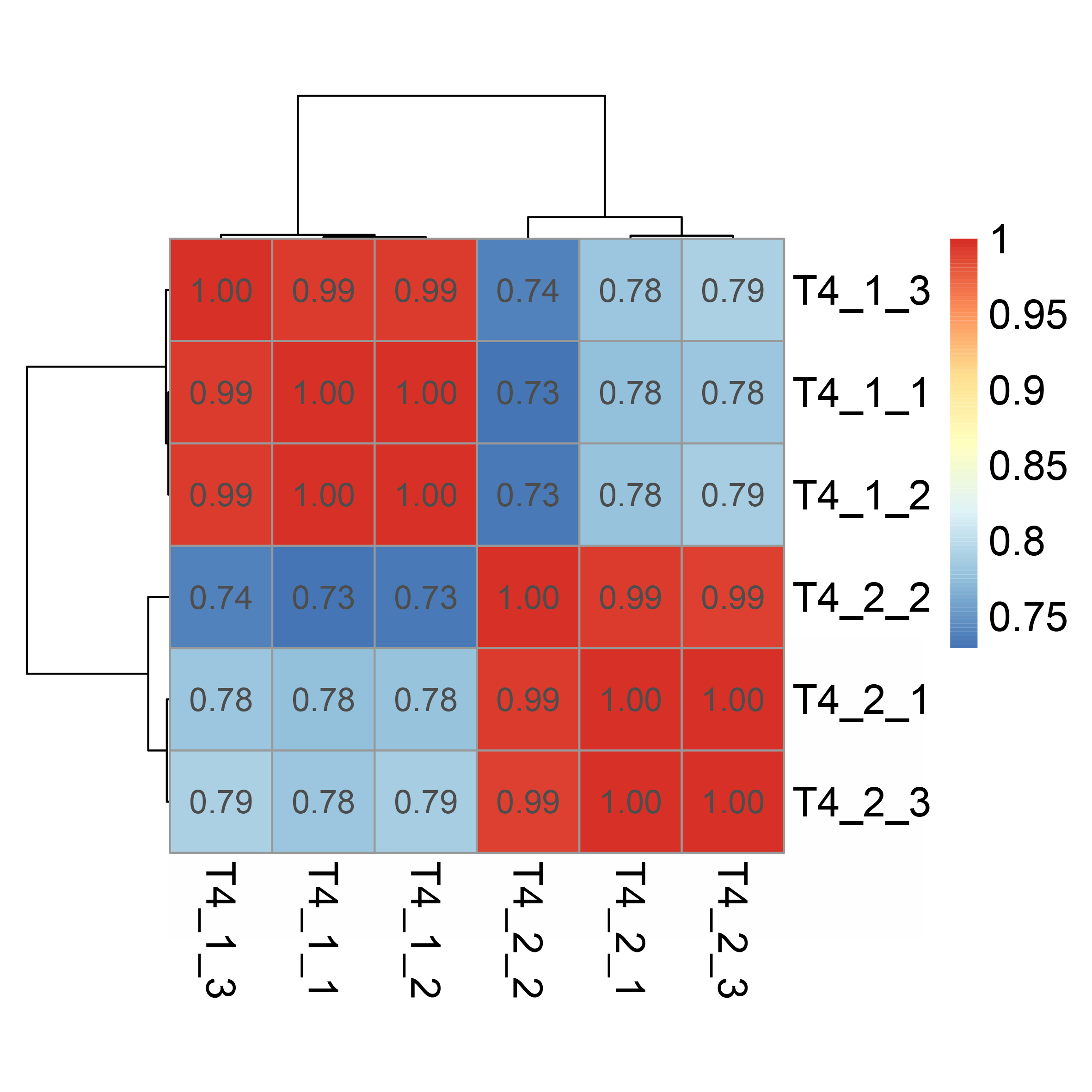 Correlation between the de novo transcriptome data of C. nomame T4-1 and T4-2.