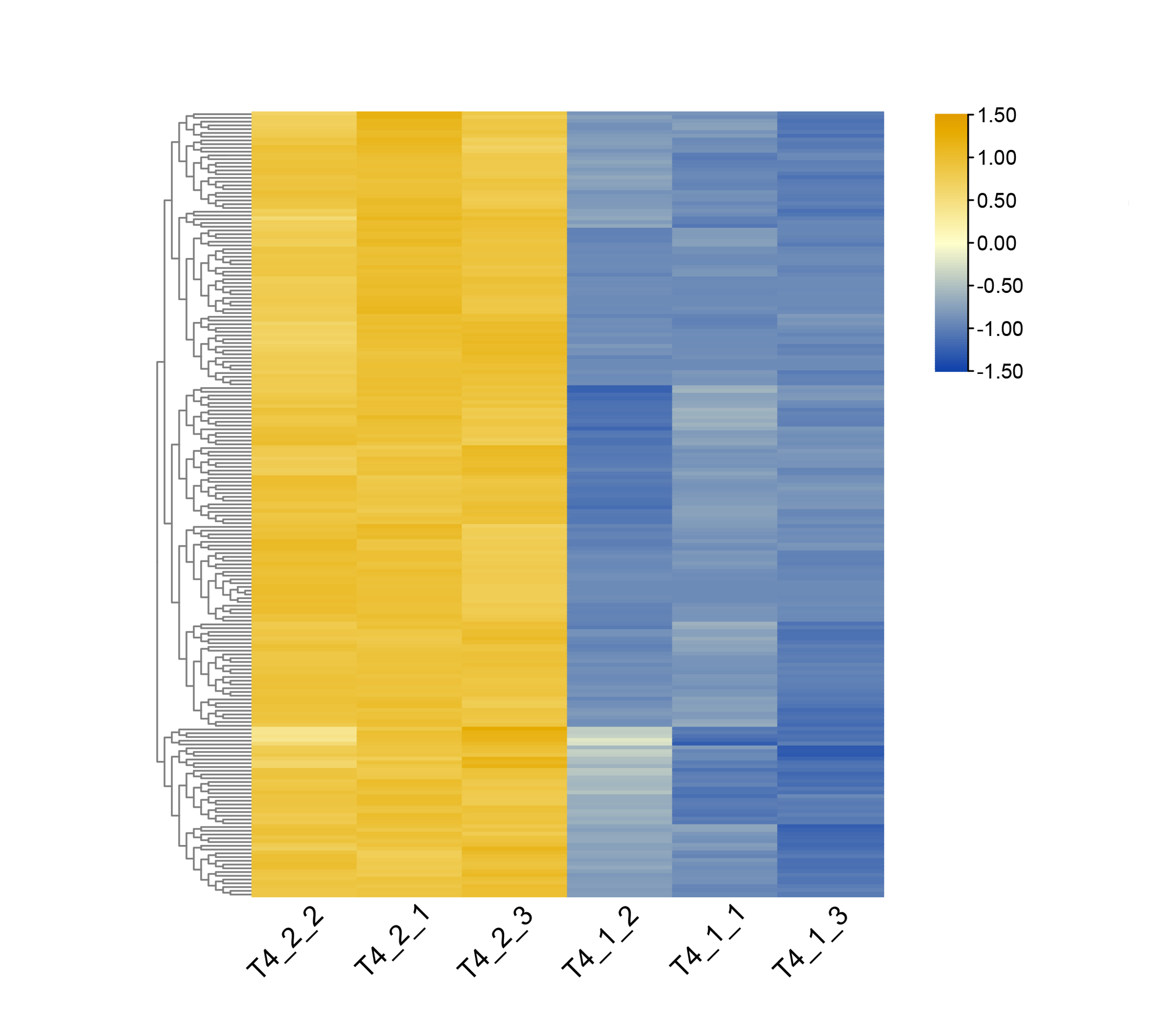 Heatmap of DEGs in C. nomame T4-1 and T4-2.