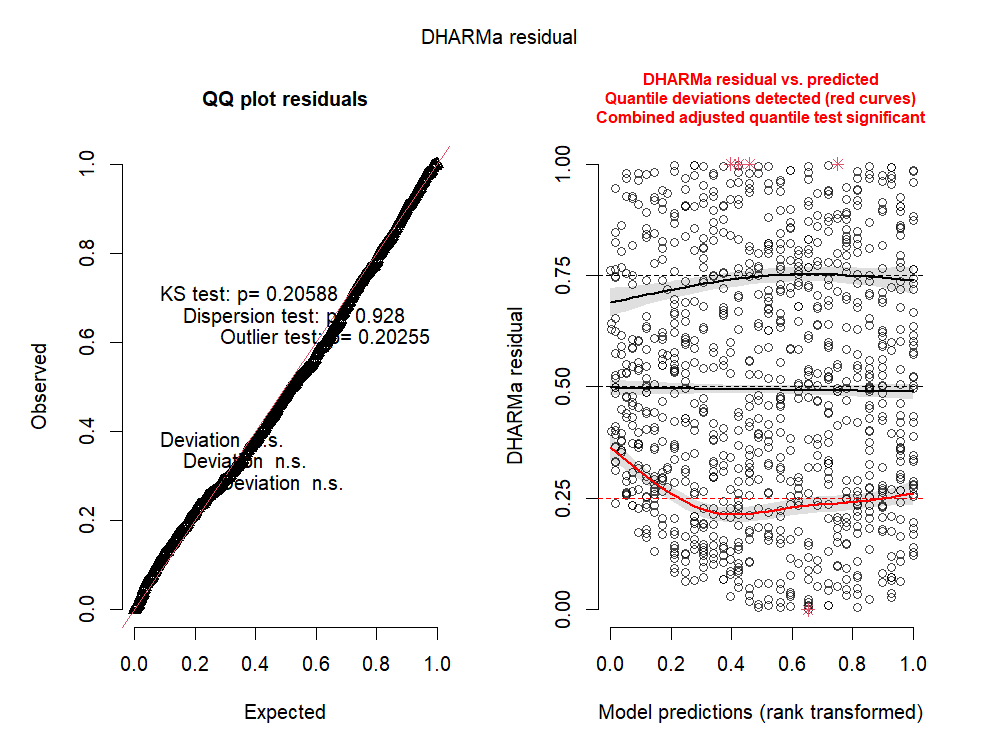 DHARMa Residual Diagnostics for generalized linear mixte model fit