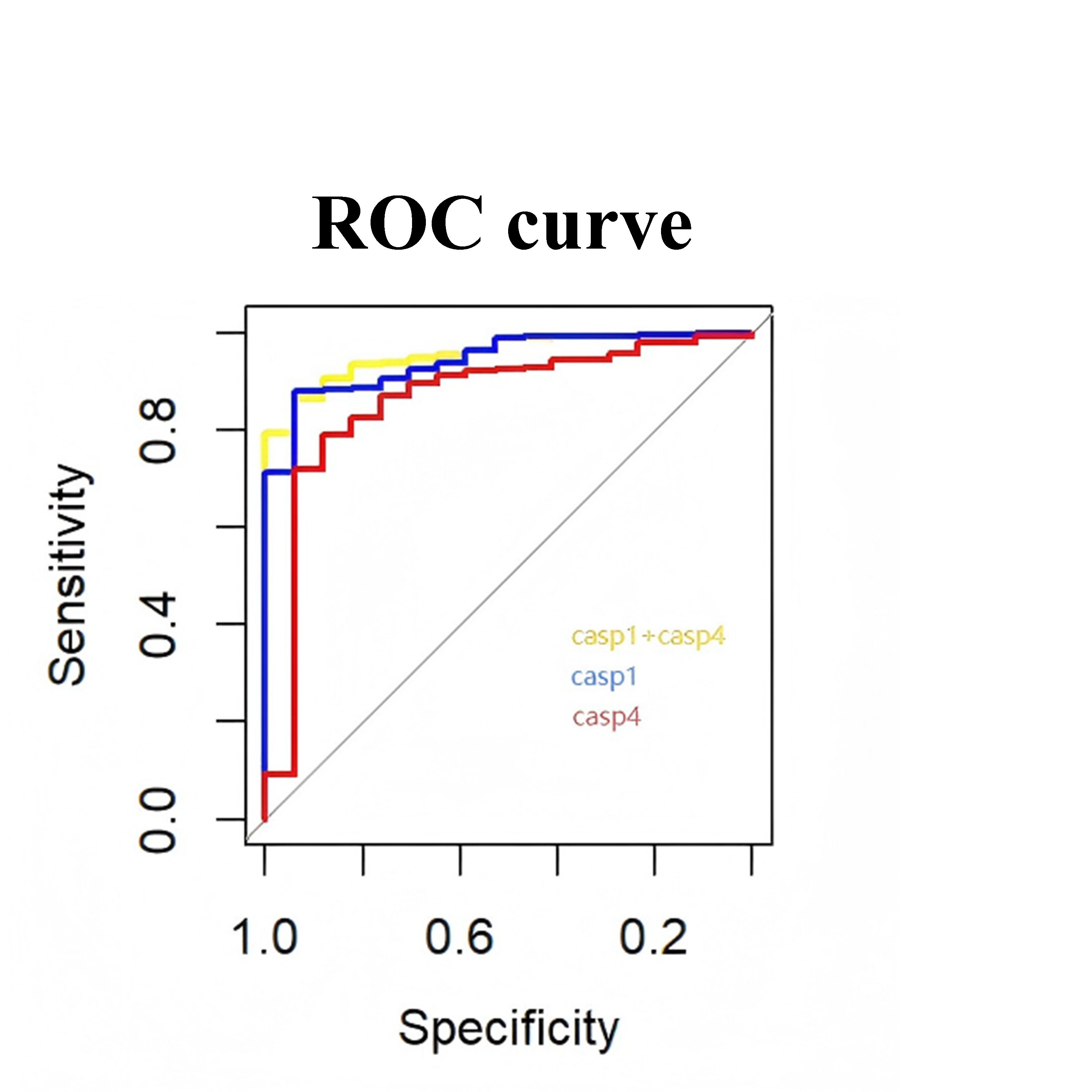 ROC curve of the logistic regression model combining CASP1 and CASP4 expression levels in the validation set.