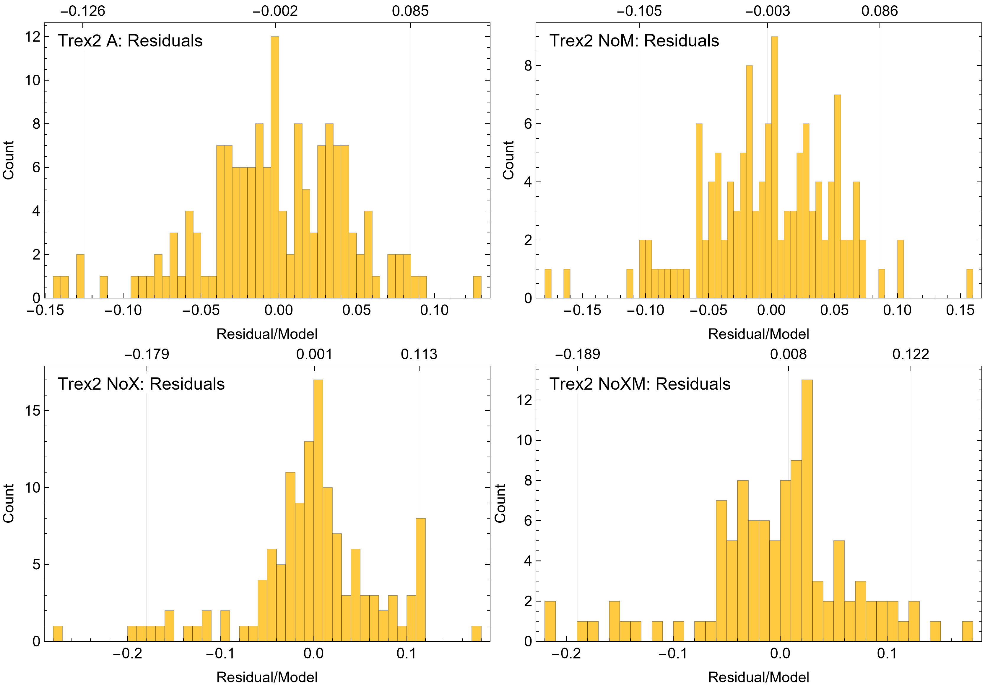 Residuals to best fitting growth models for variants of Trex2 dataset.