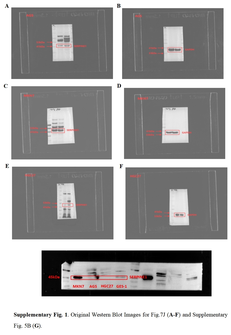 Original western blot mages for Fig. 7J (A–F) and Supplementary Fig. 5B (G)