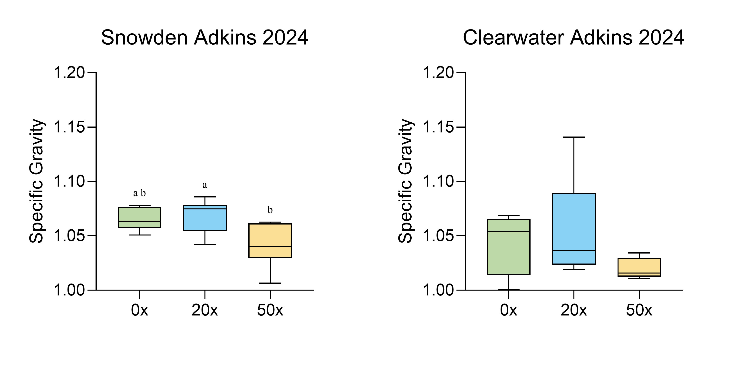 Specific gravity in Snowden and Clearwater Russet