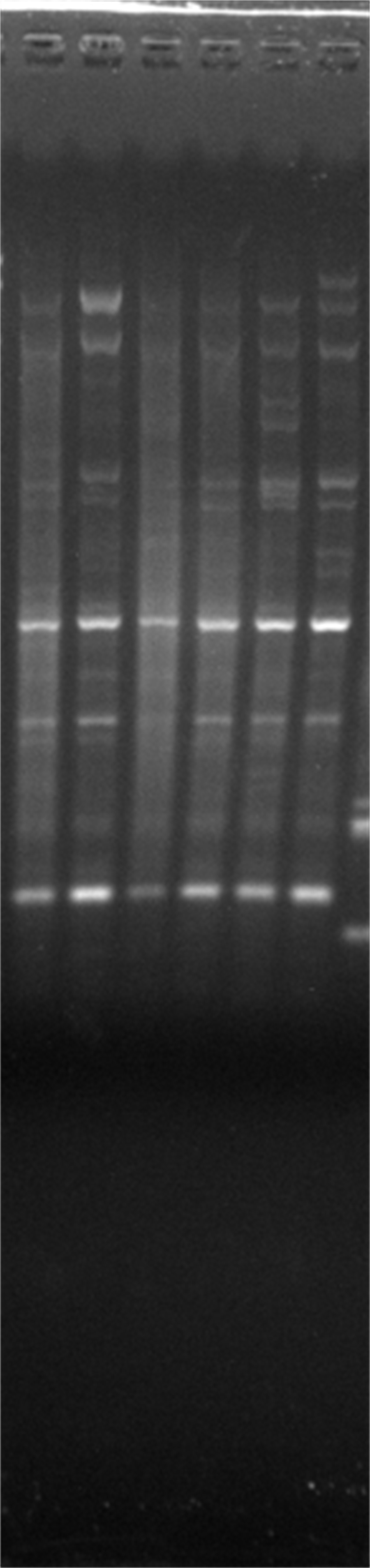Amplification results of ERF3 on NJD33, LS1-13, PTU1, LSD1, and DGD24-26 samples.