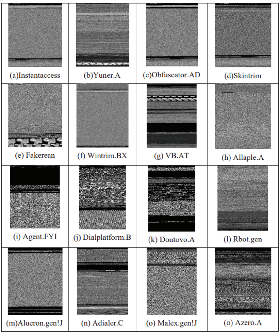The effective extraction of software features through neural networks necessitates careful consideration of data representation. This ensures the optimal extraction of crucial features and maintains the accuracy of test results. One viable solution involves the utilization of images. Research in the realm of image processing is experiencing a surge in momentum, driven by its promising outcomes across a wide array of applications (Khan et al., 2021). In this approach, the suspected file gets transformed into an image, subsequently processed by the neural network to extract relevant features. The resemblance of file structures is then depicted by the similarity in textures observed in corresponding images. For instance, Nataraj et al. (2011) proposed a malware picture representation scheme wherein the binary code of the malware is transformed into a 2-dimensional matrix. This matrix is represented as a grey-scale graph, given its numerical range [0, 255] as in Fig. S3. The distinctive textures in the data corresponding to different structures become evident through this representation.
