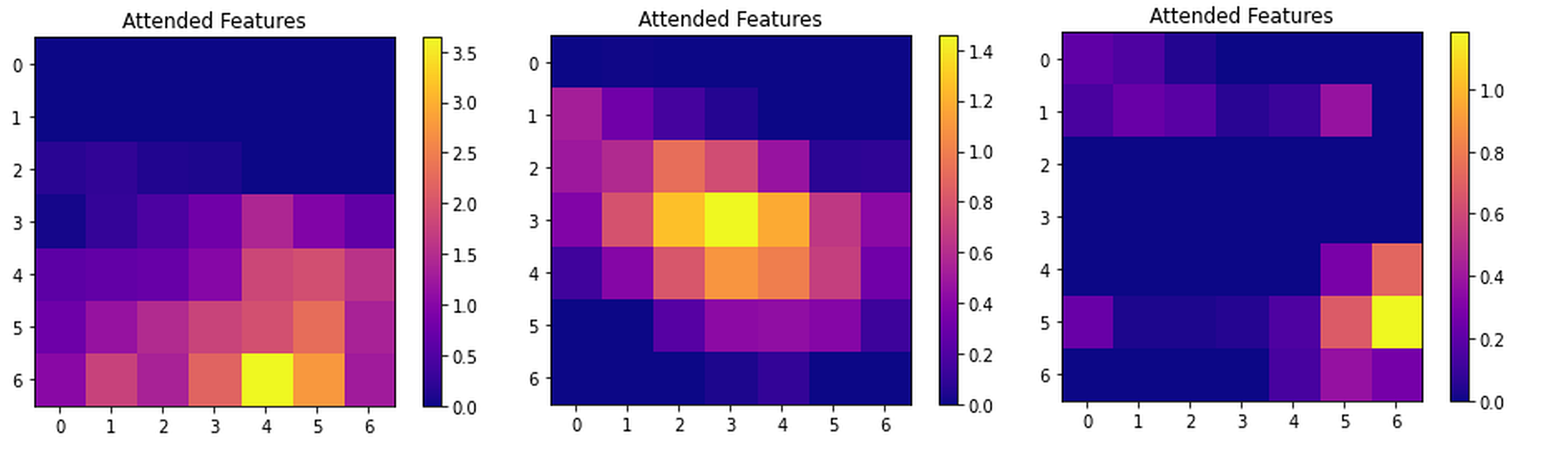 Furthermore, the decision to utilize dot-product attention is supported by its sufficiency for initial feature comparison. If the primary goal is to identify fundamental similarities and distinctions between image features, the straightforward nature of dot-product attention is adequate without introducing the additional complexity associated with multiple heads. Figure S6 shows the visualization of attended features maps from first channel.