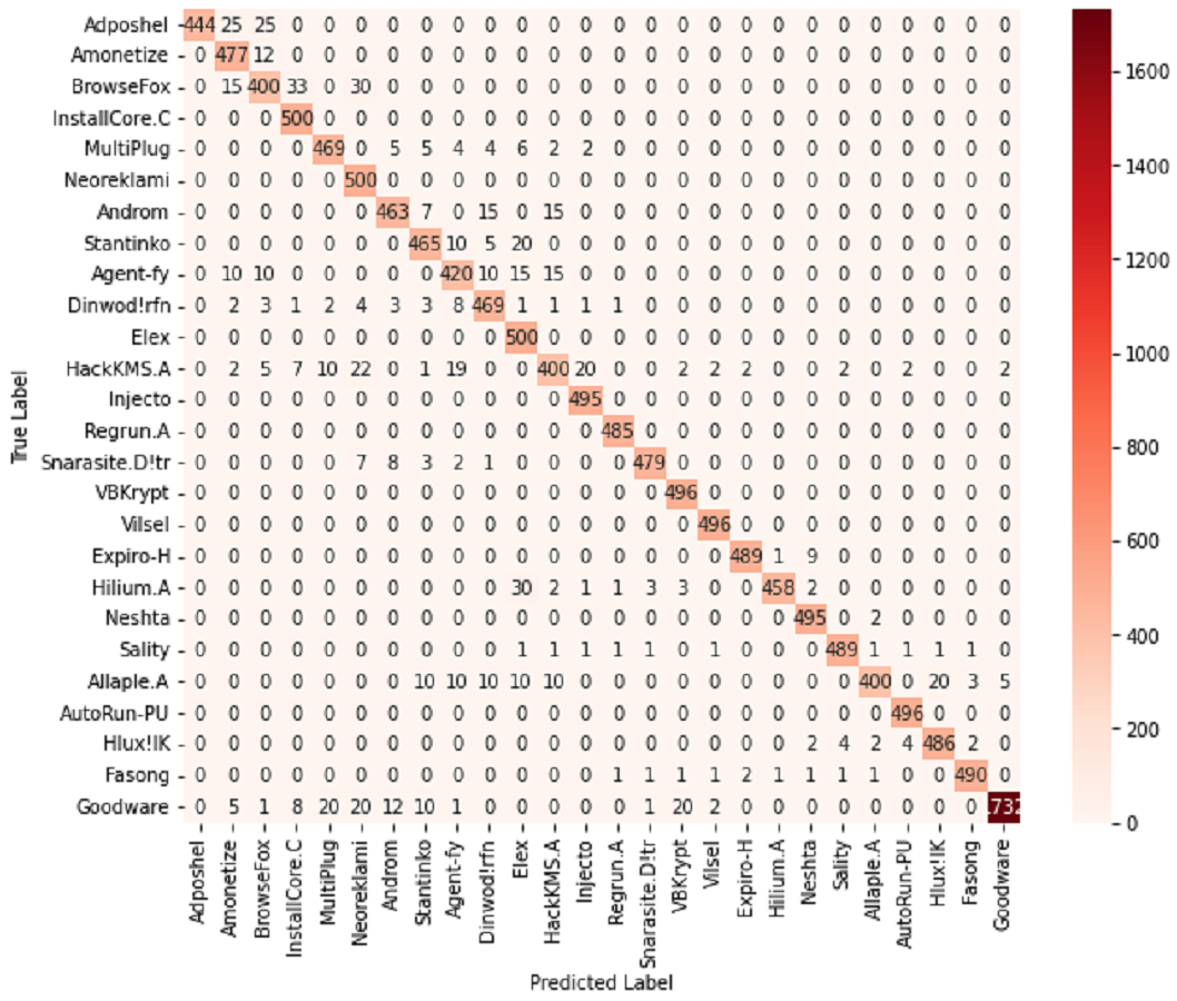 The findings, as illustrated in Fig. S7, revealed a notably low false positive rate across all families. Specifically, for Allaple.L, the accuracy reached its peak.