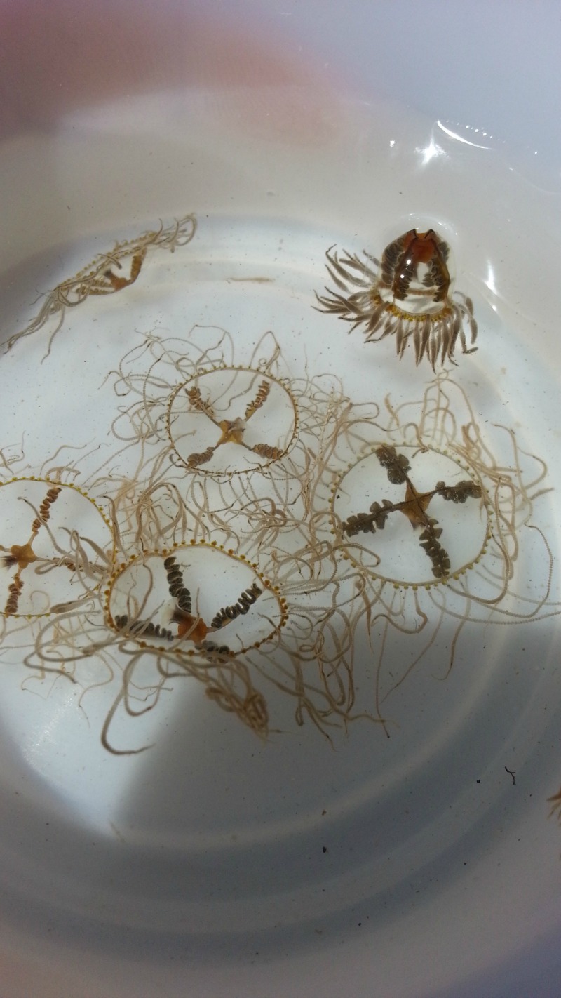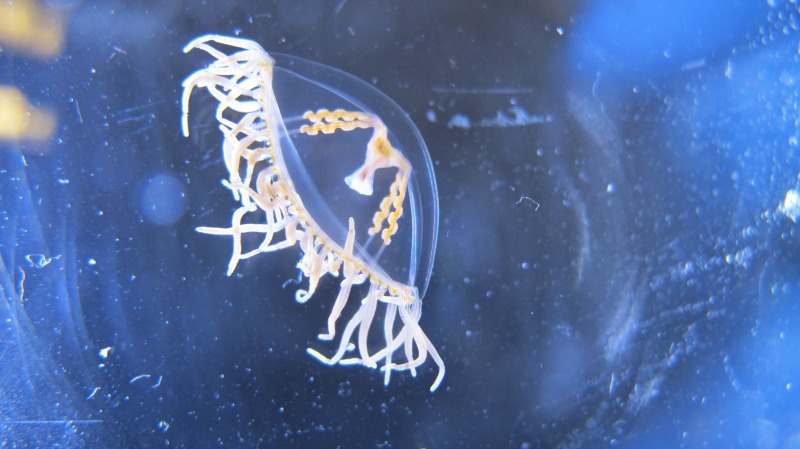 “Unlike other jellies, it is unlikely that these would be in open water,” she says. “We only see them in areas with eelgrass or seaweeds since they’re able to cling to these surfaces with the sticky pads found on their tentacles.”