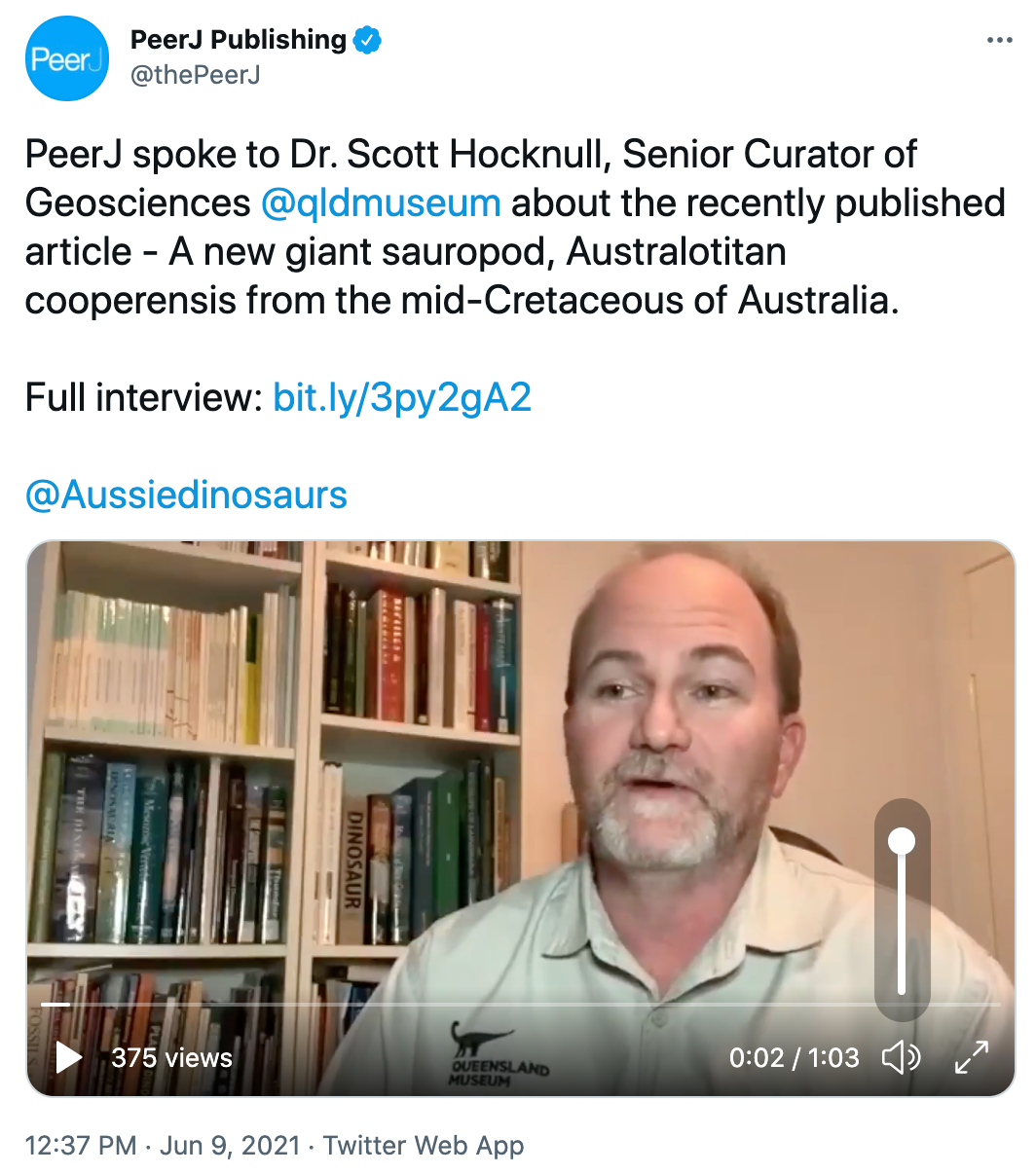 We have been seeing very positive responses to short pieces of video content and invite all PeerJ authors to submit a 2 minute or shorter self-shot video summary of your research. We will share your video with our Twitter audience of over 21,000 people including academics, funders and a wide cross-section of the general public interested in the latest research.