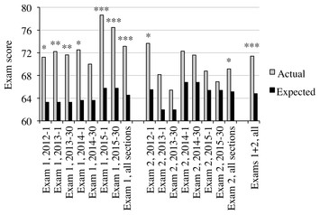 Promoting an active form of learning out-of-class via answering online “study questions” leads to higher than expected exam scores in General Biology