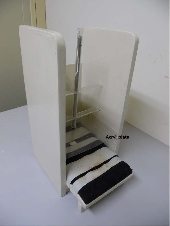 Device for mild traumatic brain injury using a rat as subject. The components of the devices are a vertical guide tube for the dropped weight and an acryl panel to absorb impact.