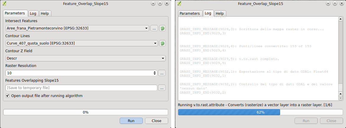 The seismic microzonation evaluate the seismic hazard at the local scale proposing to identify areas of territory characterized by homogeneous seismic behaviors. The first level of seismic microzoning has the purpose of defining the lithological properties and geometry of geological units that characterize these portions of territory (microzones). The scope of this work is to contribute to the creation of a geoprocessing methodology for topographical, geological, geophysical and geo-technical data aimed at level 1 seismic microzonation map drafting. A QGIS geoprocessing tool was designed to automate one of the analysis commonly performed for the creation of level 1 seismic microzonation maps, in particular to identify unstable zones as polygon features. The result is a polygon layer with areas prone to instability due to a slope value greater than 15 degrees.