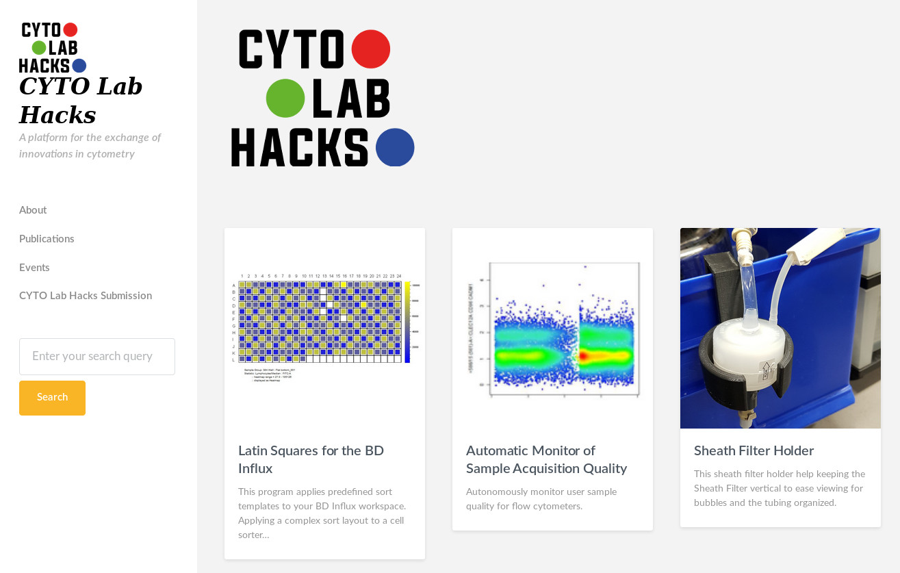 Figure 1: Snapshot of the CYTO Lab Hacks website http://bit.ly/CytoLabHacks